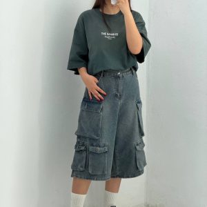 🩳 توضیحات محصول: شلوارک جین کارگو زنانه (Jorts) شلوارک جین کارگو زنانه راما قشم ترکیبی از استایل خیابانی مدرن و