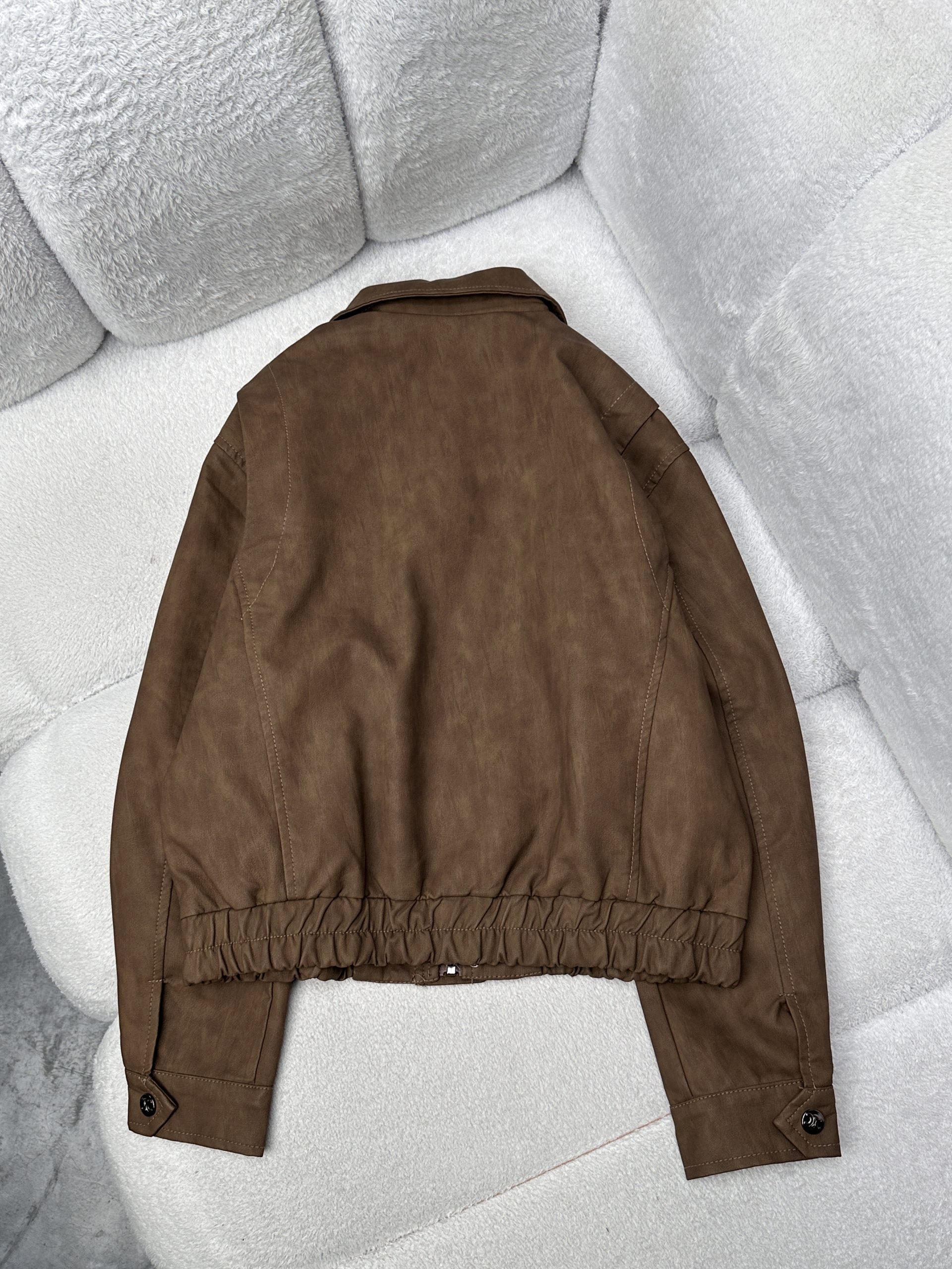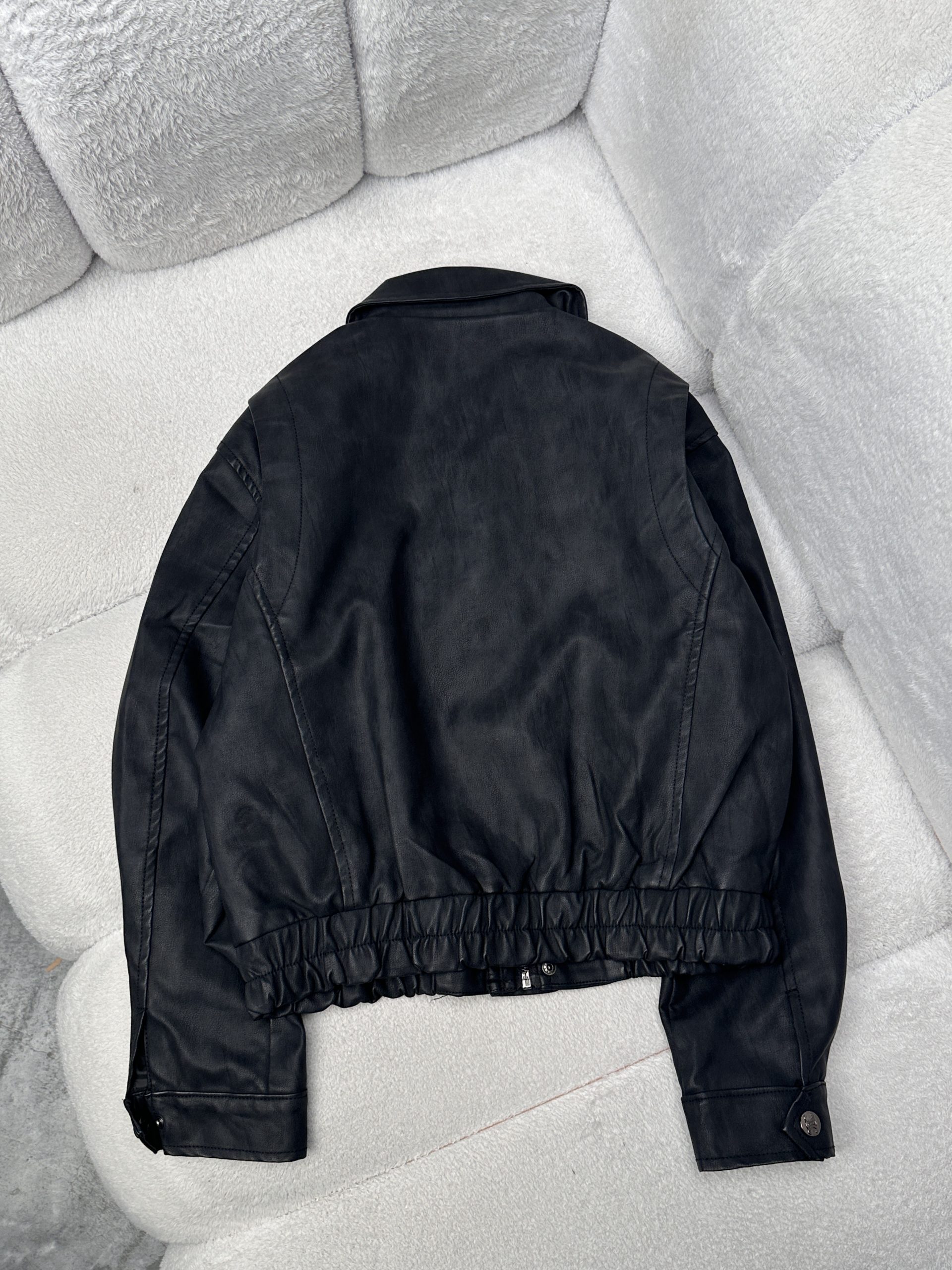 جنس این ژاکت از چرم مصنوعی باکیفیت ساخته شده که ظاهری لوکس و لطیف دارد، در عین حال بسیار سبک و خوشفرم روی بدن مینشیند. طراحی کوتاه با کش در قسمت پایین باعث میشود فرم بدن زیباتر به نظر برسد و با انواع شلوار جین، بگ یا دامن بهراحتی ست شود.