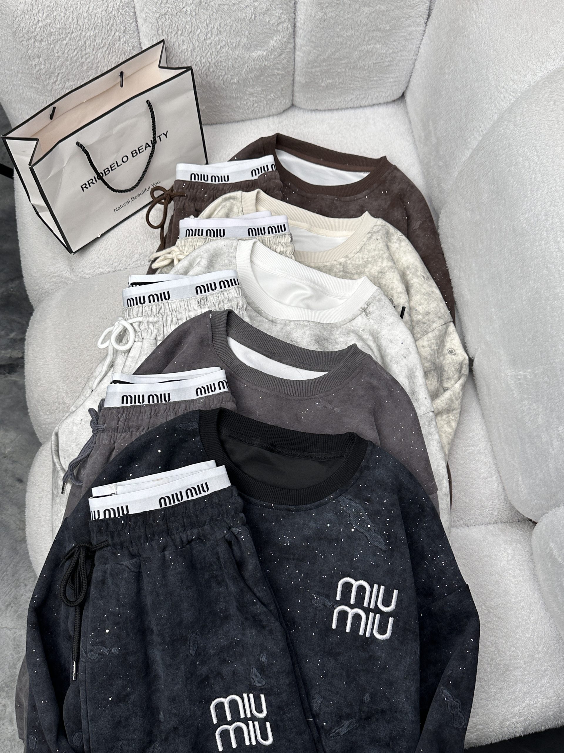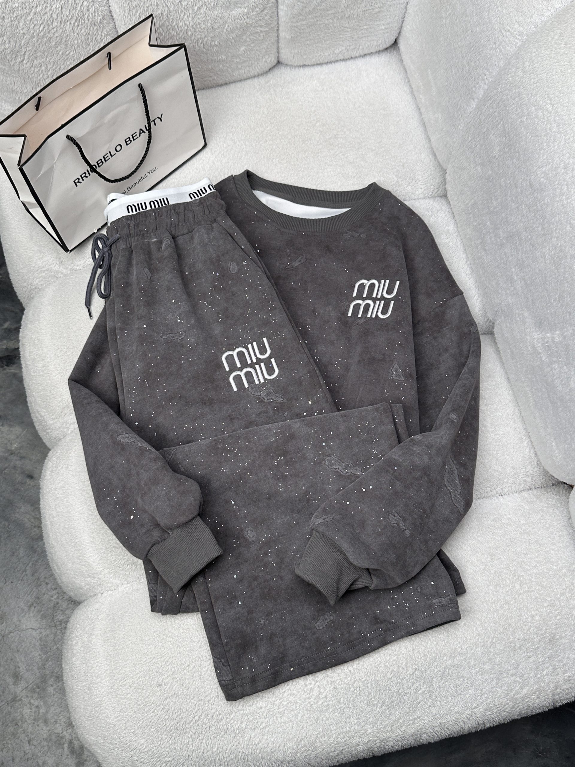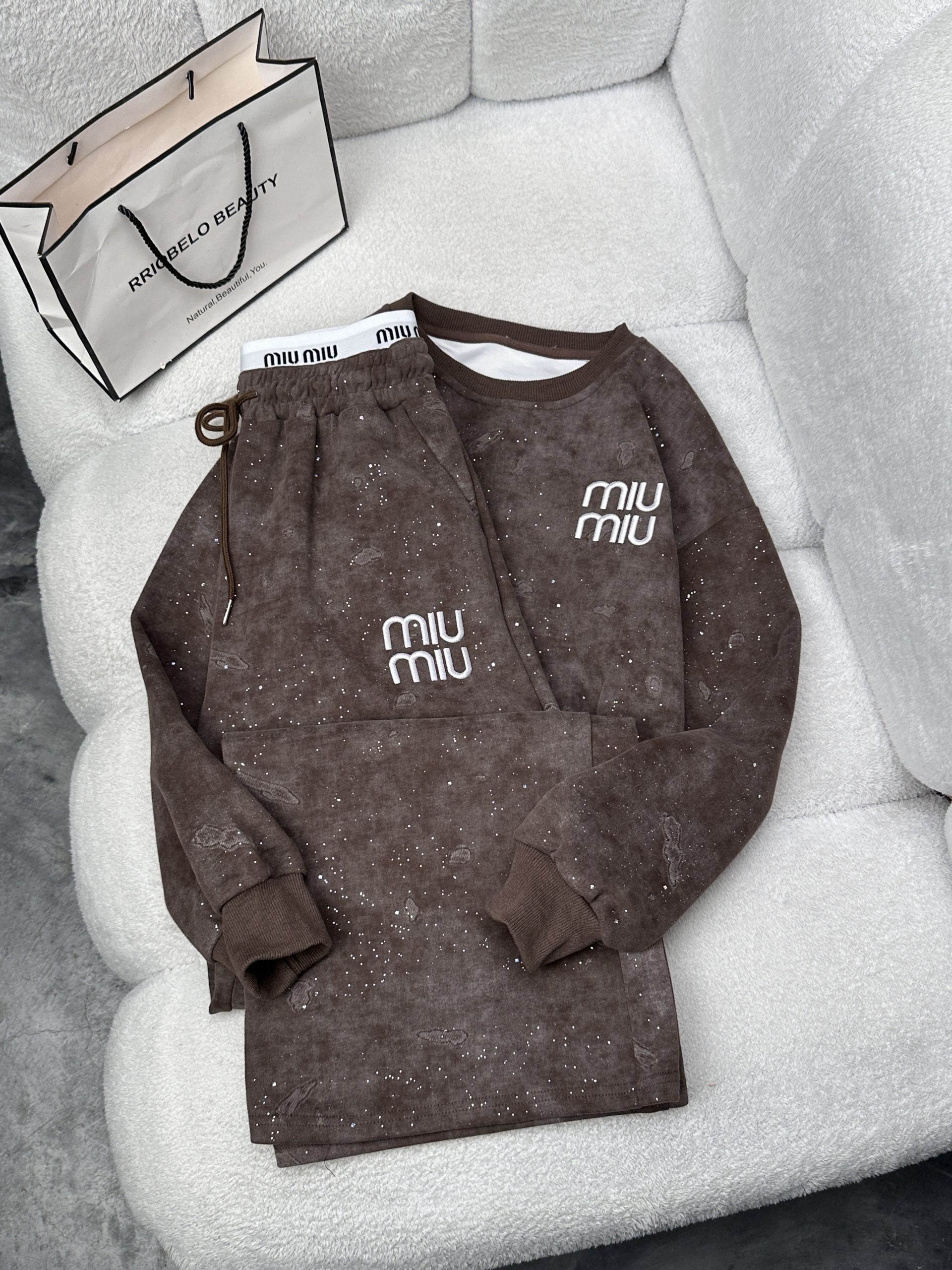 با ست دورس و شلوار شیک Miu Miu استایل خاص و راحتی را همزمان تجربه کنید. این ست جذاب از پارچه دورس درجهیک تهیه شده که لطافت بالا، دوام عالی و ایست زیبایی روی بدن دارد. طراحی مینیمال با لوگوی MIU MIU روی سینه و شلوار، جلوهای لوکس و متفاوت به آن بخشیده است.
