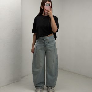 این شلوار مدل بالونی با شست جین روشن (Light Wash)، یک انتخاب بینظیر برای ایجاد استایلهای تابستانی، بهاری و فشن است. تضاد میان حجم راحت مدل بالونی و رنگ روشن جین، ظاهری شاداب، جوان و بهروز را برای شما به ارمغان میآورد.