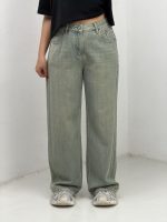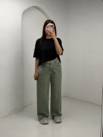 شلوار جین زنانه، شلوار واید فیت، شلوار جین طوسی، خرید شلوار زنانه از راما قشم، استایل خیابانی زنانه