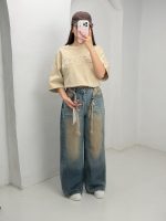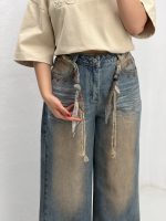 خرید شلوار بگ چرک زنانه جین با کمربند خاص از راما قشم؛ شلواری فشن، خاص و راحت با طراحی مدرن و رنگ چرک وینتیج. مناسب استایل اسپرت، خیابانی و روزمره.