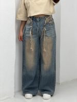 شلوار بگ چرک زنانه جین با کمربند خاص | شلوار بگ دخترانه جین اسپرت ترند 2026