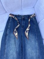 پارچه جین باکیفیت و ایستایی مناسب همراه با یک دستمال گردنی که تازه ترند شده