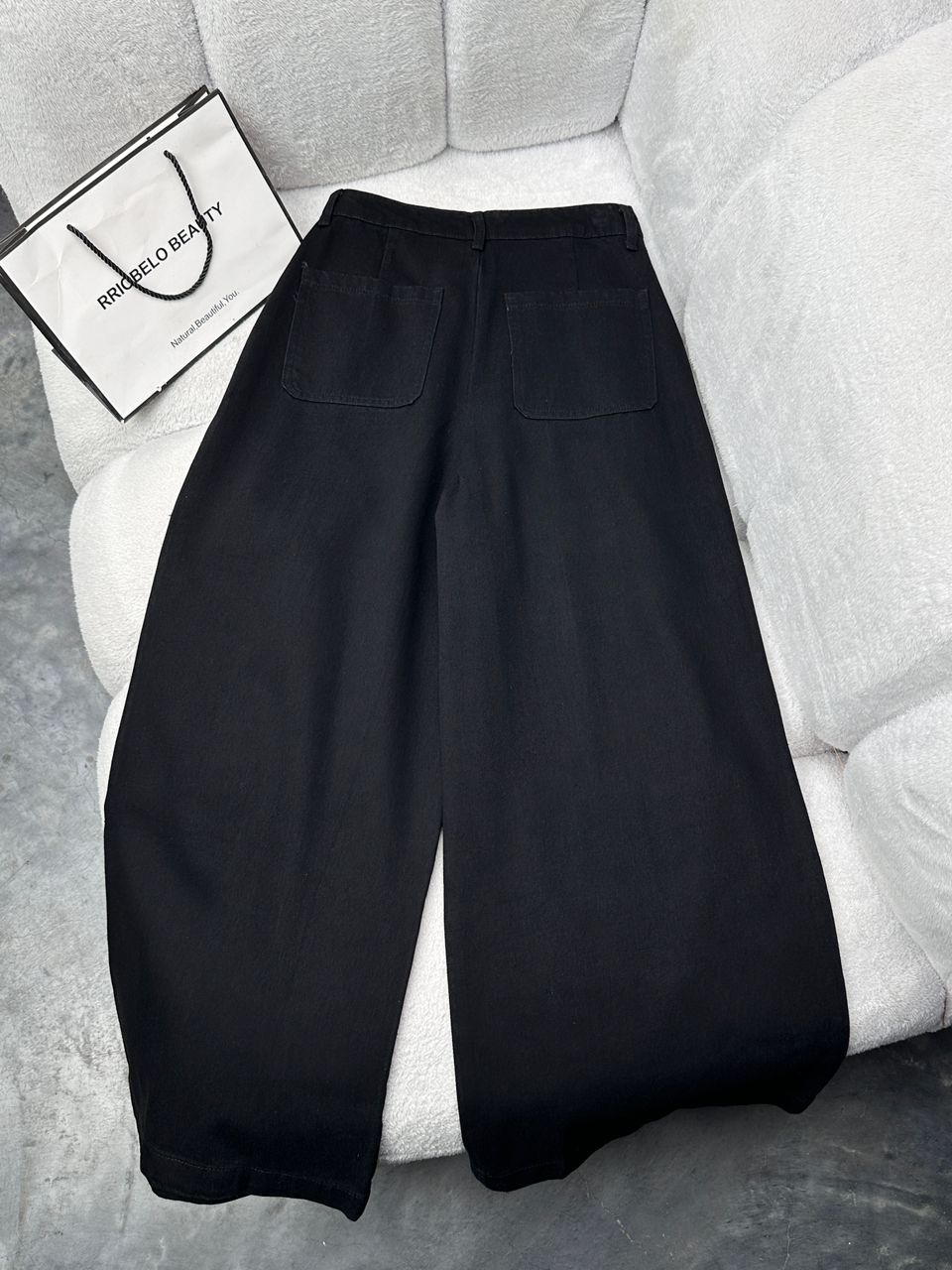 این مدل با جنس جین مرغوب و رنگ مشکی عمیق و ساده (Solid Black)، نهایت انعطافپذیری در استایل را فراهم میکند. برش سوپربگ با حجم فراوان و آزادی کامل در قسمت ران و پاچه، راحتی بینظیری را به همراه دارد و یک فرم امضادار و خاص به استایل شما میبخشد. این شلوار، رویای مینیمالیستهایی است که ترندهای بزرگ را دوست دارند.