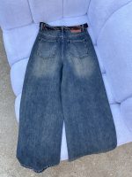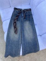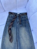 شلوار جین زنانه مدل فولبگ با فاق بلند و برش آزاد همراه با یک کراوات که به عنوان کمری و کراوات میتونین با این شلوار فولبگ چرک ستش کنید انتخابی ایده آل برای استایل های روزمره و خیابانی به سبکی جدید و خاص.
