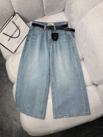جنس مرغوب و رنگ ثابت: این شلوار از پارچه جین باکیفیت بالا (احتمالاً ترکیب پنبه و کمی الاستین برای راحتی بیشتر) ساخته شده است. رنگ آن تک رنگ آبی روشن (Ice Blue/Washed Blue) بوده که یک رنگ ایدهآل برای ست کردن با انواع رنگها و فصلها، به ویژه بهار و تابستان، محسوب میشود.