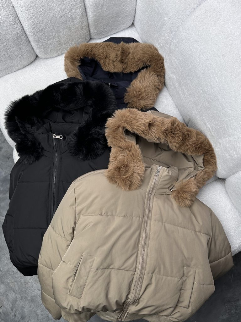 کاپشن کراپی دور کلاه خزدار قابل جدا شدن