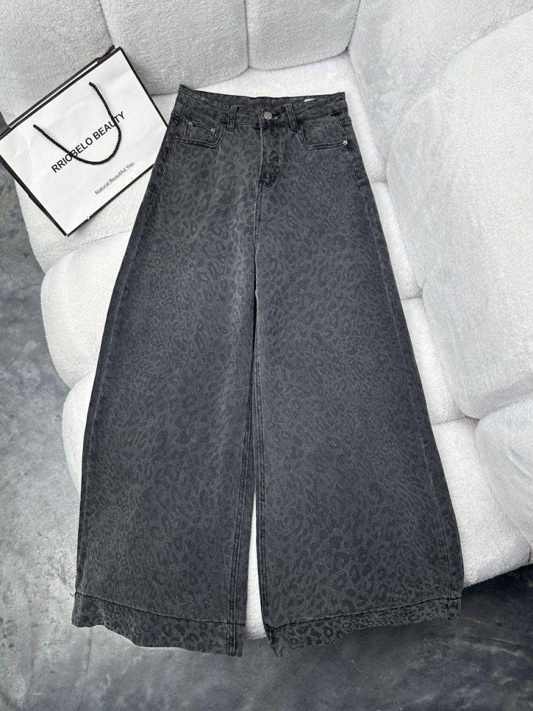 21 مهر شلوار پلنگی راما قشم کد 3533 شلوار جین واید (Wide Leg) پلنگی زغالی زنانه: ترکیبی از جسارت و راحتی به دنبال یک شلوار جین متفاوت برای