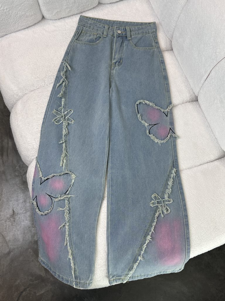 09 دی شلوار پروانه ای راما کد 2794 شلوار جین طرح پروانه بگ وارداتی کیفیت درجه یک و عالی جنس جین گرم بالا قد 105 سایزبندی 36 تا
