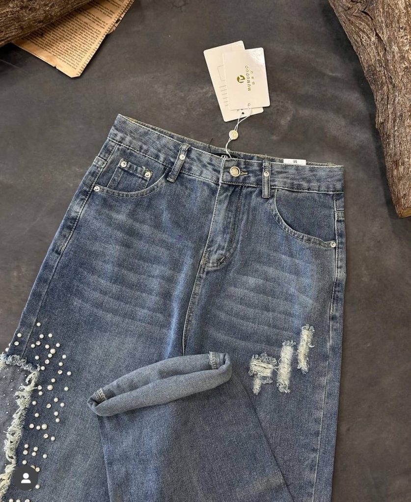 16 آذر شلوار جین مرواریدی وارداتی راما کد 2730 شلوار جین کار شده کیفیت درجه یک و عالی تنخور فوق العاده شیک جنس جین گرم بالا سایزبندی 36 تا